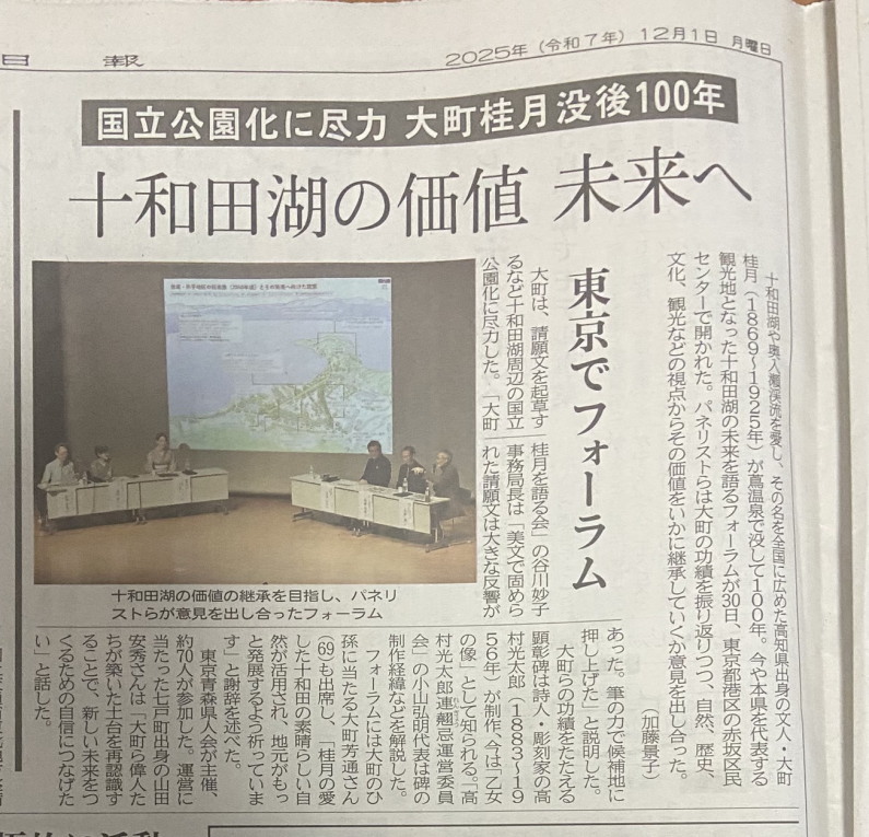 <十和田湖の未来を語る東京フォーラム 〜大町桂月と名勝価値の再発見〜> 2025年11月30日 |